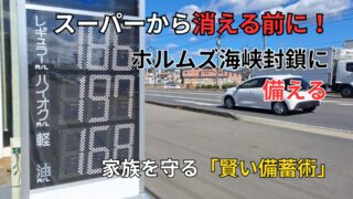 有事・ニュース解説 ホルムズ海峡封鎖で買っておくものリスト!不足・値上がりに備える備蓄術 2026年4月最新。ホルムズ海峡封鎖で本当に買えなくなるもの・不足するものは?元自衛隊員が過去のデータから、スーパーから消える前に「買っておくもの」「備蓄すべきもの」を優先度別に解説。日用品から値上がりする食品まで、家族を守る対策リストを公開。 2026.04.16 有事・ニュース解説